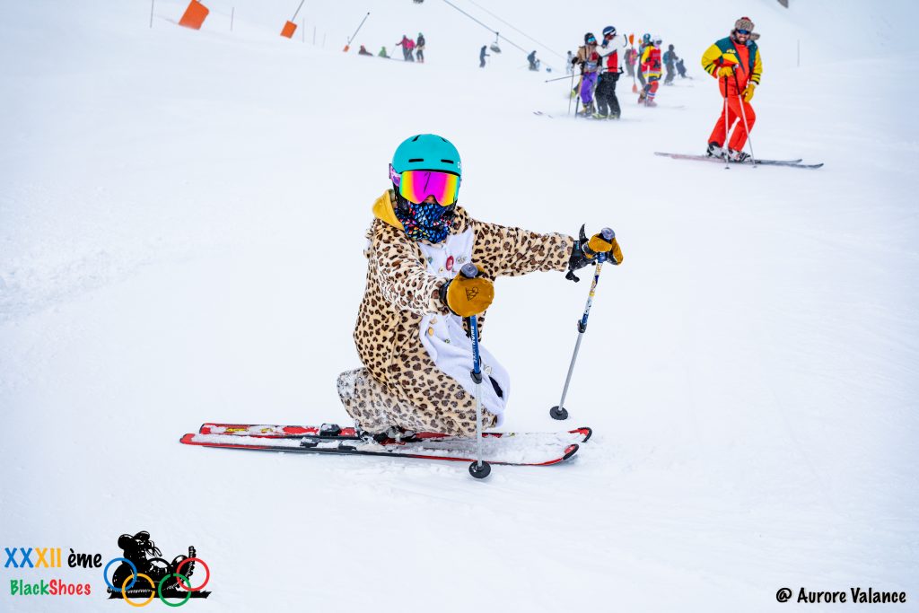 2025, la Black Shoes met à l’honneur les enfants du club des sports en télémark, sur le thème des Schtroumpfs.
